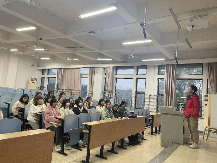 之后,辅导员陈力瑞老师做了发言。陈老师帮同学们梳理了几个重要的时间节点。一是2月和3月,陈老师贴心地提醒大家,班上打算考研、考公的同学,要早做准备,趁二三月份学长学姐们刚参加完研究生招生考试、选调生考试或各省公务员考试之际,及时向他们请教备考经验或请他们推荐分享优质复习资料。二是4月和5月,要密切关注公司公司团学部门组织的大型活动,积极筹备和举办班级团支部的团建活动。三是6月,在毕业季到来的时候,建议同学们准备一个有意义的用以欢送和表达祝福的集体节目。