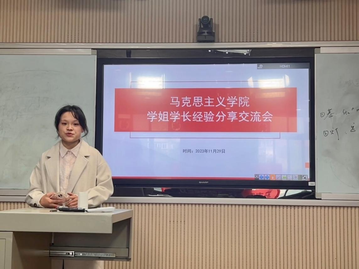 其次,加权成绩和综测分成绩位居专业第一的22级陈思卓同学与同学们深入交流关于期末考试和复习经验的话题,她主要从学科复习方法、平时分、时间安排等方面分享了她独到的见解和高效的方法,分享结束后,台下响起了同学们热烈的掌声。