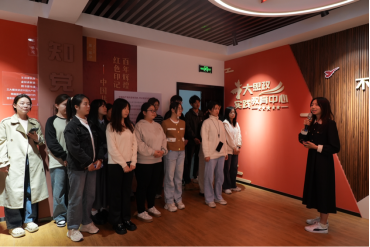 活动伊始,在讲解员的带领下,同学们参观了思政实践教育中心展馆,党史互动滑轨屏、红色留声亭、党建电子书瀑布流阅读机、“四史”AR展示台……科技的现代化与历史的厚重感有机结合,同学们置身于党史长河当中,沉浸式的感受党史的发展脉络和红色革命的光辉历程。