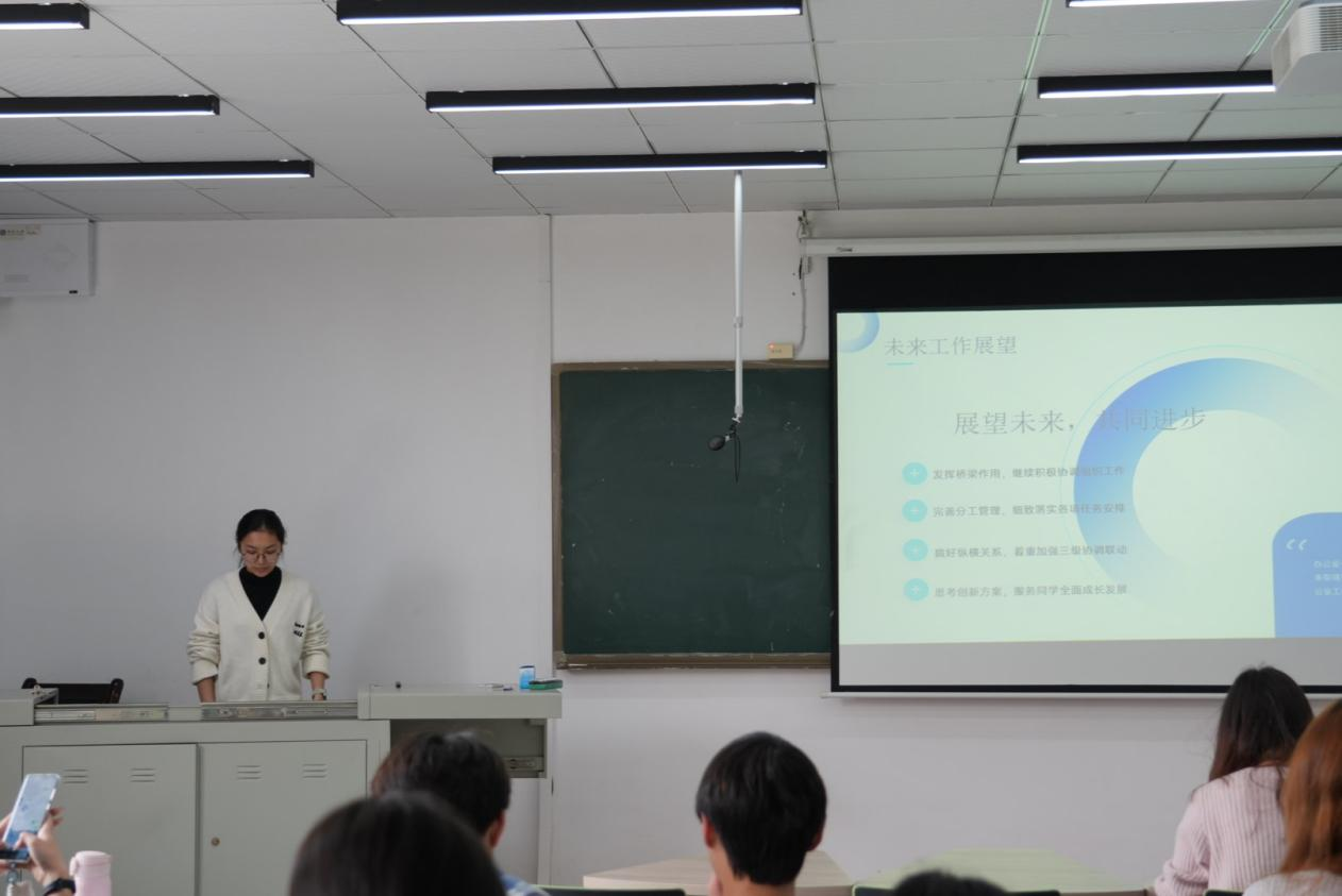 述职大会上,各部门就上学期工作内容进行汇报,回顾并总结了各部门的工作内容和完成情况,并在最后反思了工作中存在的不足及对未来发展的展望。随后团委书记龙雯静老师提出指导意见,望各部门继续加强学习、优化活动内容等,同时叮嘱员工干部要以身作则,善作善成。
