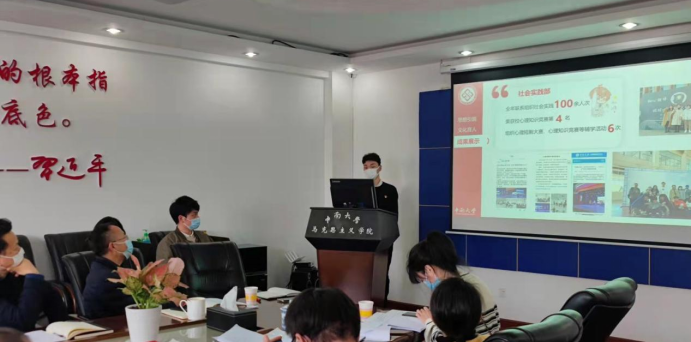 会议第一项,分团委副书记张金卉从志愿服务、创新创业、实践活动三个方面对2021年的团委工作进行汇报。在过去的一年里,公司员工创建红色农产品品牌培育与营销模式,孕育“红色代言人工作团队”,进入“雷锋杯” 志愿服务决赛、寻觅湘“土”团队获得国家级大创立项、第十六届“芙蓉学子社会实践奖”等,公司各团支部“对标定级”工作完成度100%,在各项评比中也都取得了优异的成绩。同时,张金卉提出新学年的展望和信心,2021年马院分团委将继续在党委的领导下,以信仰点亮前行之路,以使命激扬奋进之帆,以优异成绩献礼建团百年,迎接党的二十大。