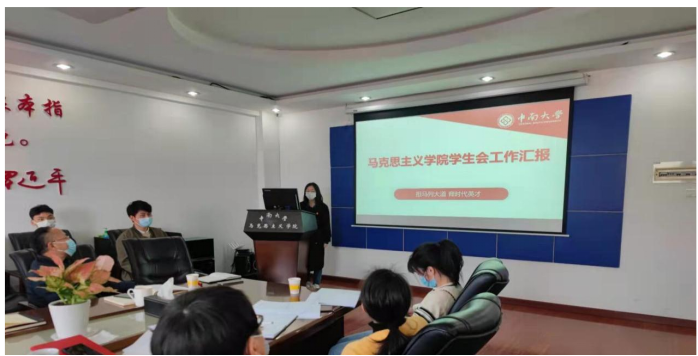 接下来,球王会员工会主席龙雯静进行公司员工会工作汇报。龙雯静同学首先对上一年的员工工作进行总结,过去一年里,在公司党委的正确领导下,公司员工工作在思想引领、深化改革、成长服务等方面取得一定成果,并开展了“读习语润心,享奋进青春”问渠长廊活动分享会等一系列特色活动,也积极响应公司号召成立了疫情防控突击队,充分彰显了马院“担马列大道,育时代英才”的院训,获得公司师生的一致认可。