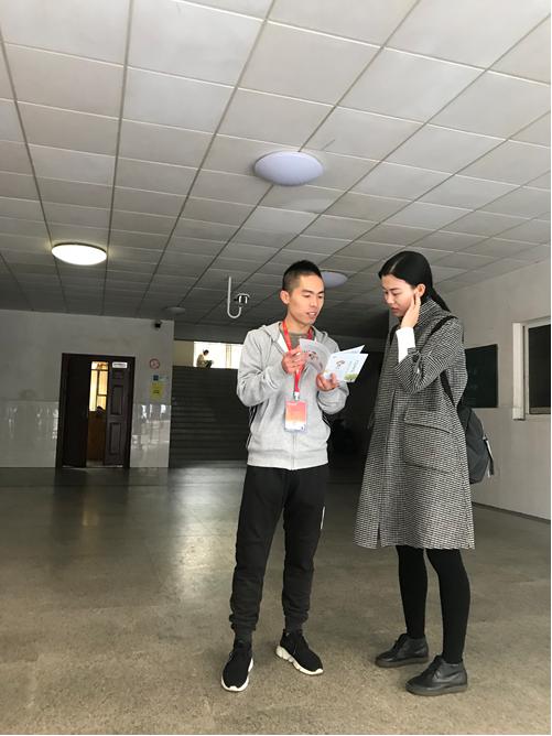 线下理论宣传环节。11月9日在球王会官网南校区三教一楼大厅进行线下的理论宣传与咨询活动。在公司学工办主任秘金雷老师的支持和鼓励下,研究生会各部门通力合作,在三教一楼大厅设立了咨询台,并通过现场咨询,分发心理健康手册等方式向新生宣传心理健康知识。同时,安排线上有奖问答的获奖者进行奖品的领取工作。