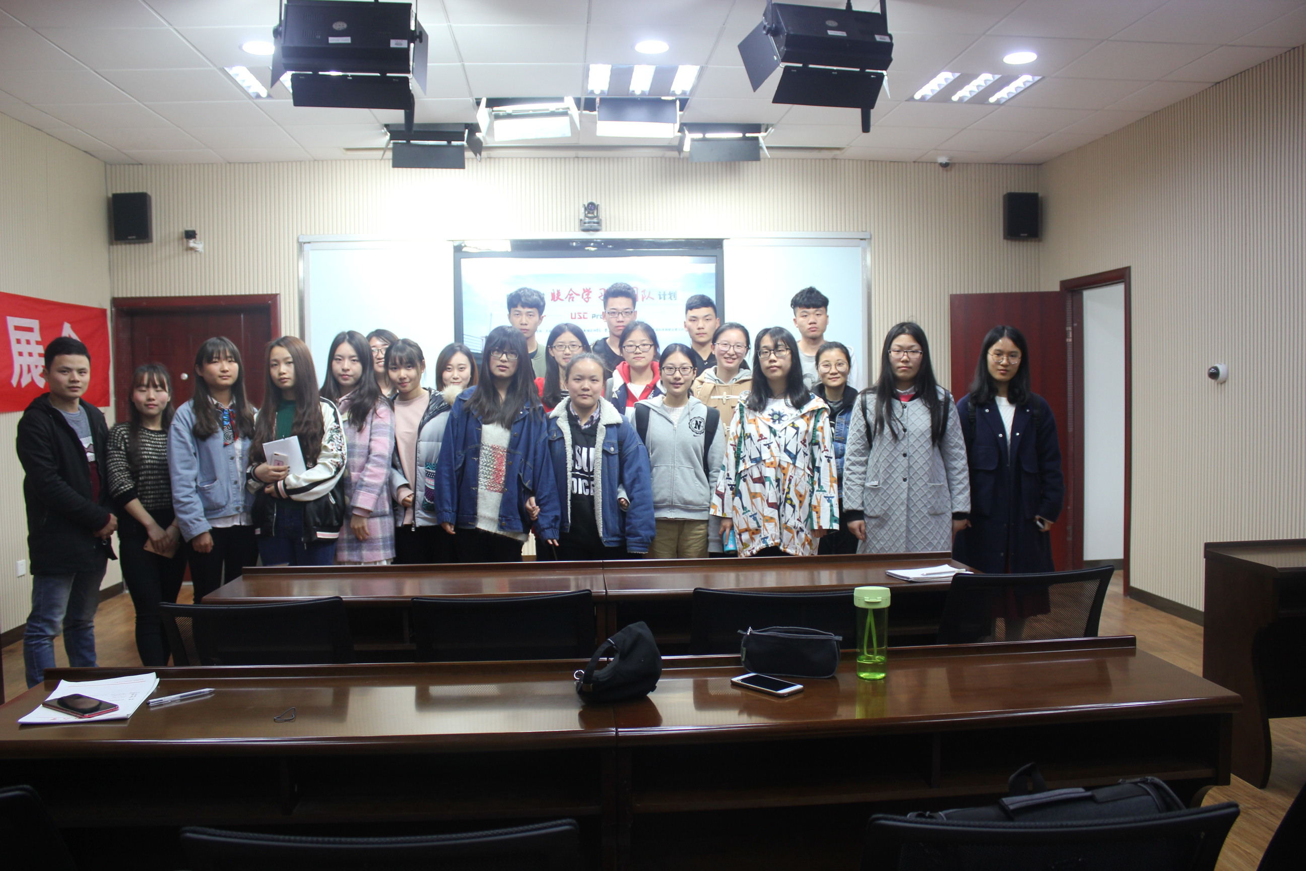 2017年4月12日下午三点,公司在三教608教室成功举办了USC计划第三次拓展交流会,球王会辅导员秘金雷老师、邹秉虹老师和于佳楠老师以及公司2016级全体本科生参加了此次交流会,16级研会主席梁倩组织并主持了本次交流会。
