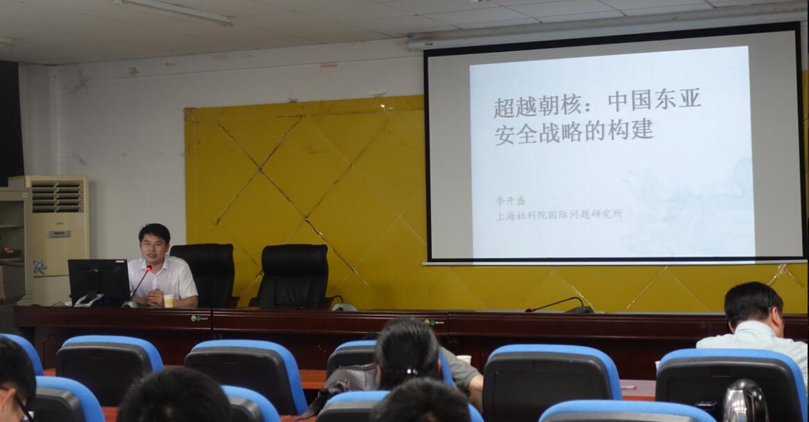 5月22日晚7点,上海社会科公司国际问题研究所李开盛研究员莅临球王会东方红讲堂,在三教407学术报告厅为全院师生带来主题为“当前东北亚态势及其逻辑”的学术报告。本次讲座特邀公司政治学研究所罗会钧教授主持,公司领导及师生百余人参加。