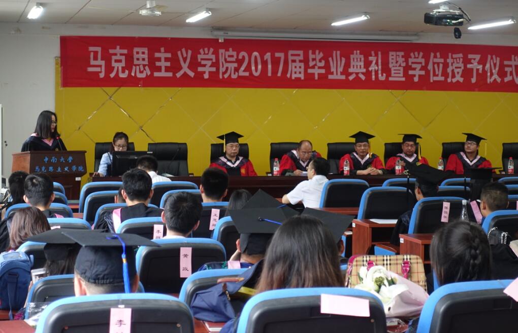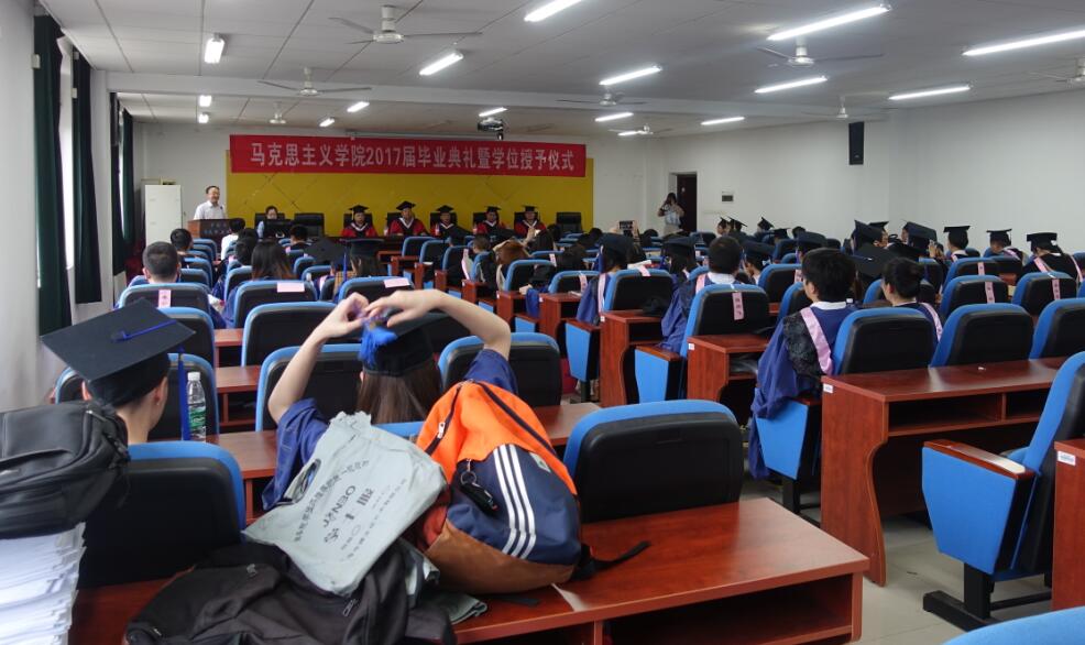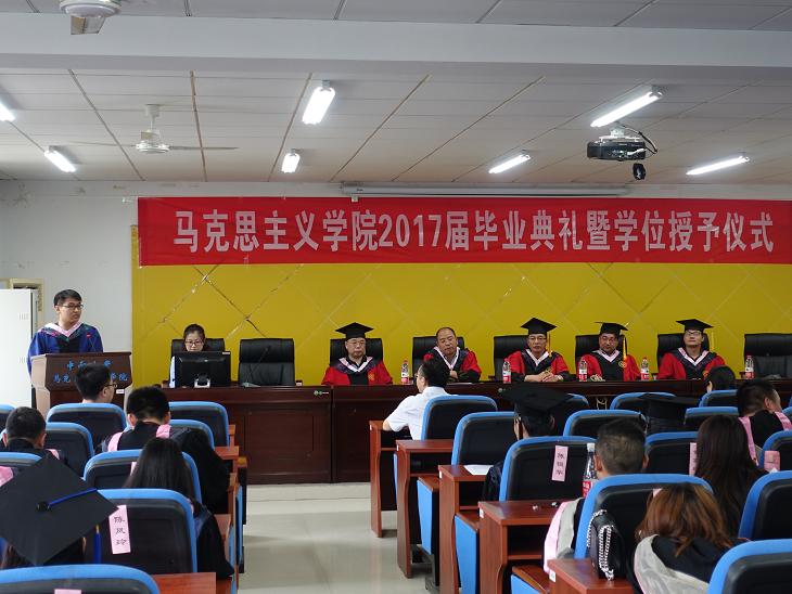 2017年6月14日下午三点,马克思主义学院2017届毕业生毕业典礼暨学位授予仪式于三教407隆重举行。经理张卫良、党委书记张若飞、副经理彭昇、王翔、颜峰、刘志刚,党委副书记杨雪宾、教授委员会主任周湘莲教授、史纲教研中心主任万琼华教授、博士生导师胡凯教授、曾长秋教授、罗会钧教授、贺才乐教授等教师代表以及公司2017届全体本科、研究生毕业生出席了此次毕业典礼。典礼由党委副书记杨雪宾主持。