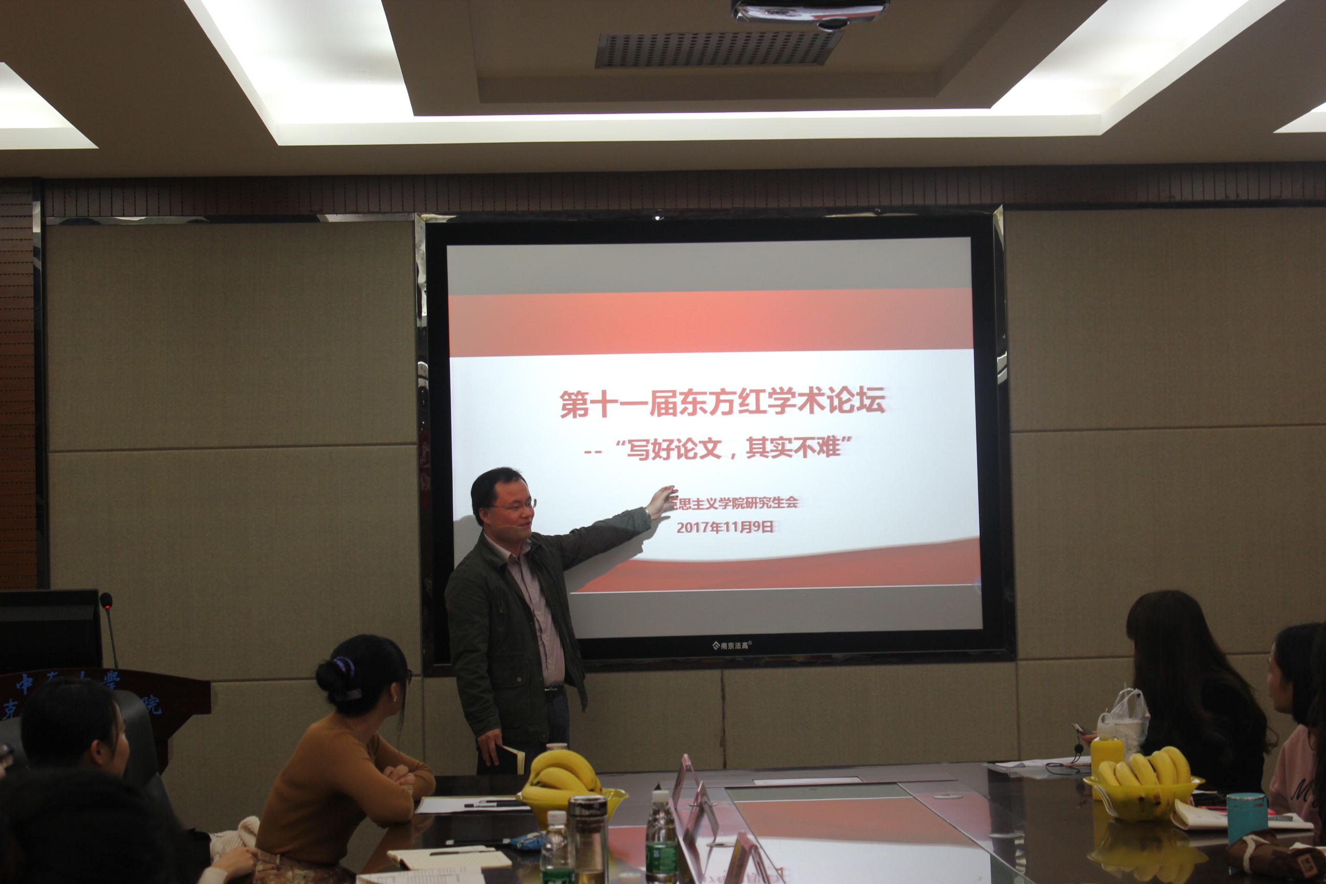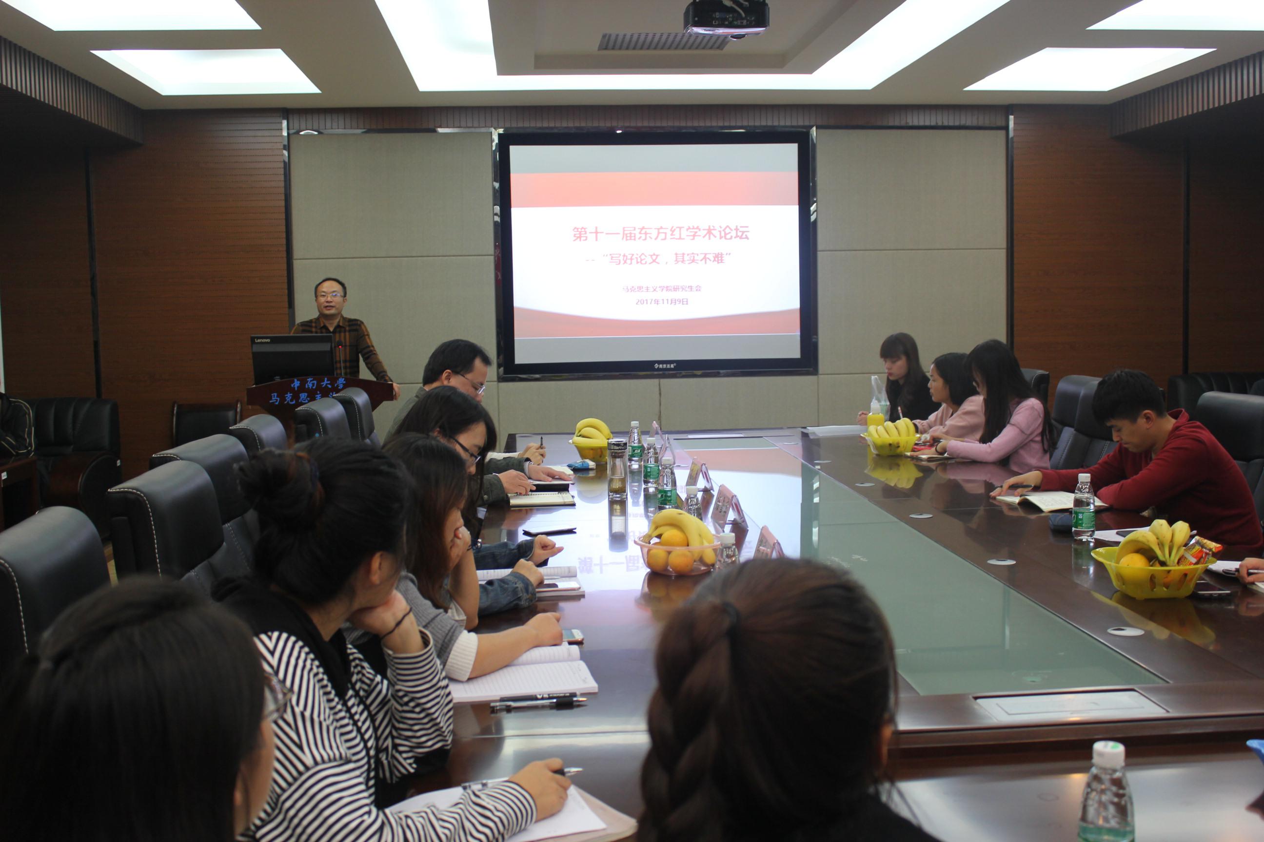 11月9日晚上七点,公司研究生第十一届东方红学术论坛之“写好论文,其实不难”在三教609顺利开展。公司党委杨雪宾副书记、胡栋材老师、学工办主任秘金雷老师、辅导员刘智慧老师、辅导员邹秉虹老师等领导老师出席了本次活动。论坛邀请到公司2016级博士研究生龚珊和文学与新闻传播公司2015级硕士研究生谢文惠为大家分享学术科研的经验体会。论坛由研会学术实践部部长闫方主持。