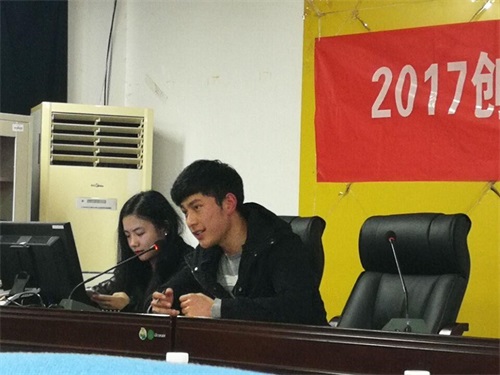 随后,第十五届“挑战杯”全国老员工课外员工科技作品竞赛特等奖获得者——山河青年公益发展中心团队代表朱佩同学介绍创新创业的经验。山河青年公益发展中心团队是一个多领域、多功能、跨专业、辐射面非常广的团队。首先,朱佩同学从学术、合作、实践和社会组织等方面介绍了团队的工作及所取得的成就;第二,他又从导师的层面上阐释了导师的重要性;第三,他从研究足迹、研究思路和研究方法等方面出发,来解答同学们应该如何去开展团队工作;最后,朱佩同学介绍了团队建设的问题,提出团队要想往前走,必须及时转变研究方向,切忌浮躁,要坚持到底的观点。 紧接着,第十五届“挑战杯”全国老员工课外员工科技作品竞赛三等奖——田野调查践行者团队代表陈力瑞和严欣同学则从组建团队和寻找导师的角度给同学们提出建议。他们特别提出,同班同学组建小组的优势,找导师要找身边真正关心你、愿意和你一起奋斗的导师。二人在课题的选择及申报方面也向同学们提出了建议,帮助同学们尽快熟悉了升华杯的程序。