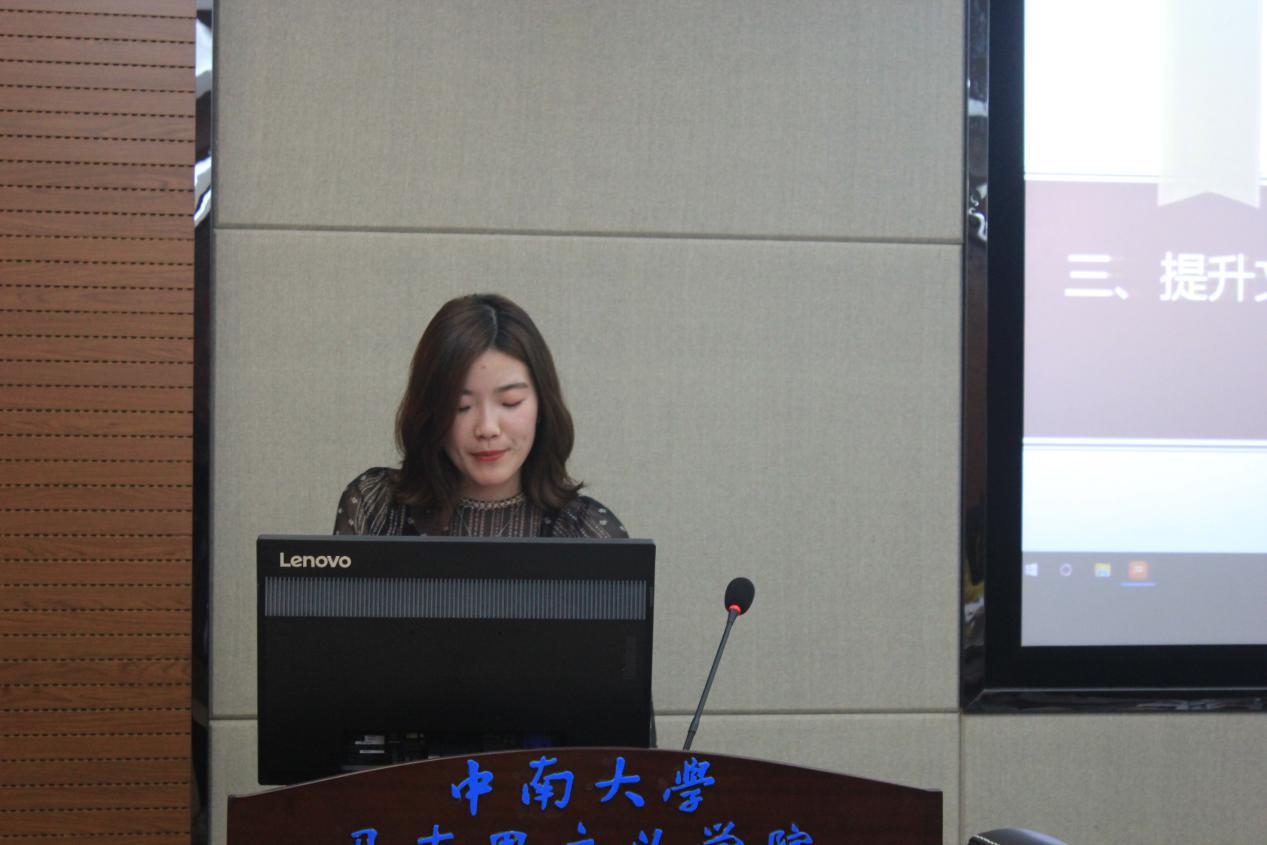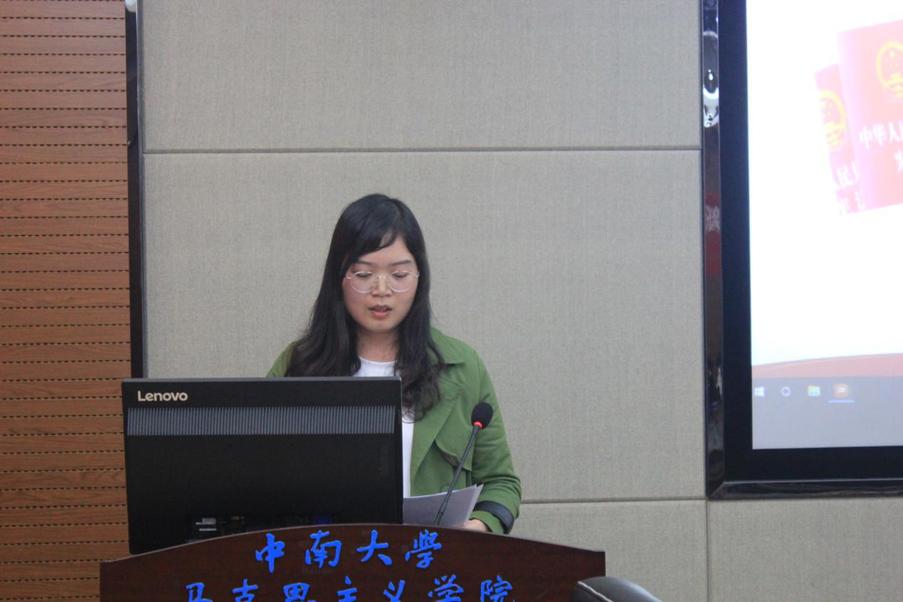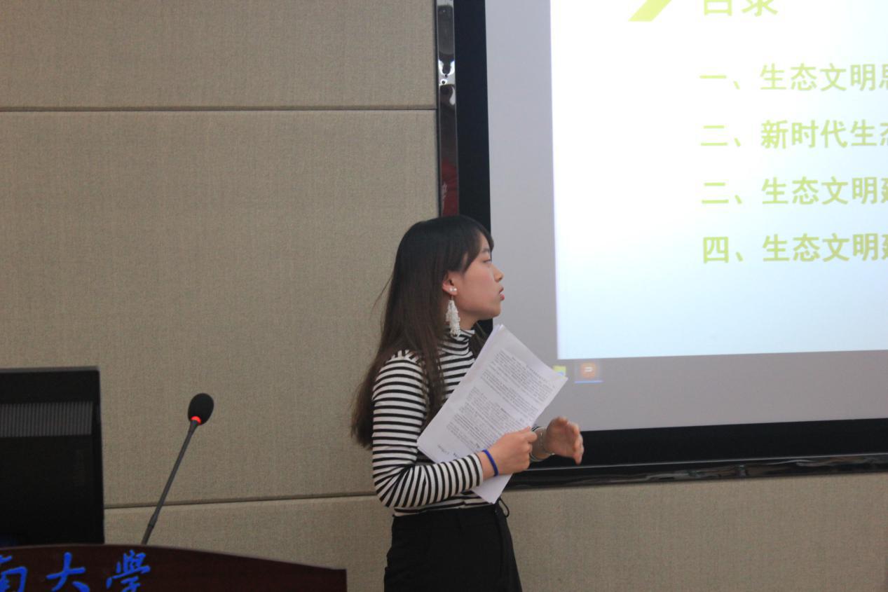 接下来,公司四位研究生代表分别围绕习近平新时代中国特色社会主义思想,选取独到的角度来解读习近平新时代中国特色社会主义思想。2016级薛晓洁以新时代纪检监察工作为主题,主要从国家监察体制改革的原因、内容和意义这三个方面来对我国新时代纪检监察工作做了分享。2016级张江楠则另辟蹊径,以“新时代的文化自信与文化自信的新时代”为主题,她旁征博引地从文化自信的哲学解释、中国梦的需要以及人类命运共同体的需要这三个方面让我们领悟到了树立民族文化自信的重要性。2017级闫方同学则主要从生态文明思想的发展历程、新时代生态法治思想、生态文明建设的困难及对策、生态文明建设思想重要意义这四个方面对习近平新时代中国特色社会主义生态文明建设进行了分享。2017级谢书君同学则以新时代国际关系为主题,从提高经济辐射力推动非洲国家自主发展、增强政治互信力实现中非关系的跨越、提升文化融合力增添中非团结的新动力这三个方面对于新时代提升中非关系基本路径进行了探析。活动中大家踊跃发言,热烈讨论,气氛活跃。