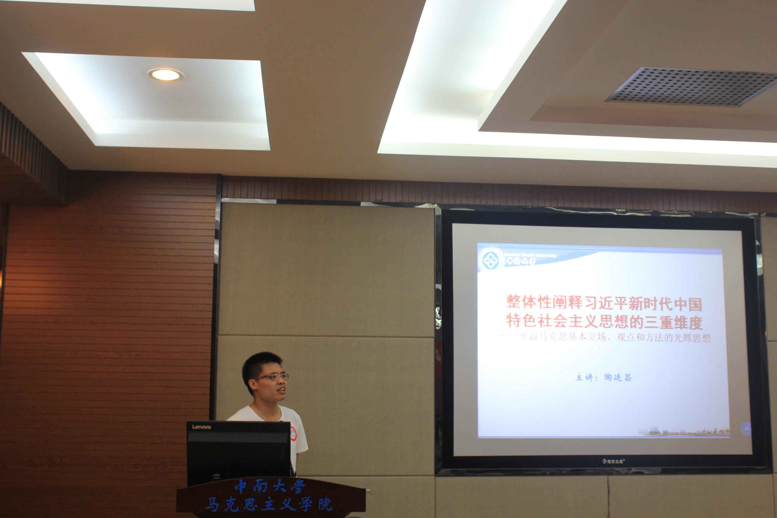 6月22日晚上19点,公司研究生东方红学术论坛之“纪念马克思诞辰200周年论坛”在三教608室顺利开展。论坛特别邀请到王浩斌教授作为点评嘉宾。公司全体研究生参加了本次论坛,活动由研究生会简淑敏同学主持。 活动伊始,由王浩斌教授为本次论坛致辞。王浩斌教授高度评价借助马克思诞辰200周年这个契机,让同学们相聚于论坛,反思马克思主义理论在当代的价值的意义,也十分开心本次论坛能够邀请到自己作为点评,同大家一起共享理论“大餐”。 接下来三位研究生分别围绕马克思主义在当代的现实意义和价值,选取独到的角度同大家进行分享。2016级研究生陶廷昌学主要从整体性角度对习近平新时代中国特色社会主义思想的三重维度——基本立场、基本观点、基本方法同大家进行了分享。2017级研究生王慧祥同学则围绕三个问题——我们今天为什么需要马克思主义、我们需要的是什么样的马克思主义、马克思主义哲学的发展历程同大家进行了探讨。2017级研究生肖磊同学则从资本的逻辑与人的逻辑的较量,带领大家《共产党宣言》进行解读。 王浩斌教授对发言的同学的讲解进行了精彩的评析,他对三位同学认真阅读马克思经典著作的学习态度给予了高度的评价。他鼓励在场的每一位同学要经常去“触摸”原著,结合社会的现实问题,得出自己的领悟。既把原著当做历史著作去读,同时又把它当做现实的著作去领会,这样才能真正做到了理解了马克思发展性和创新性。