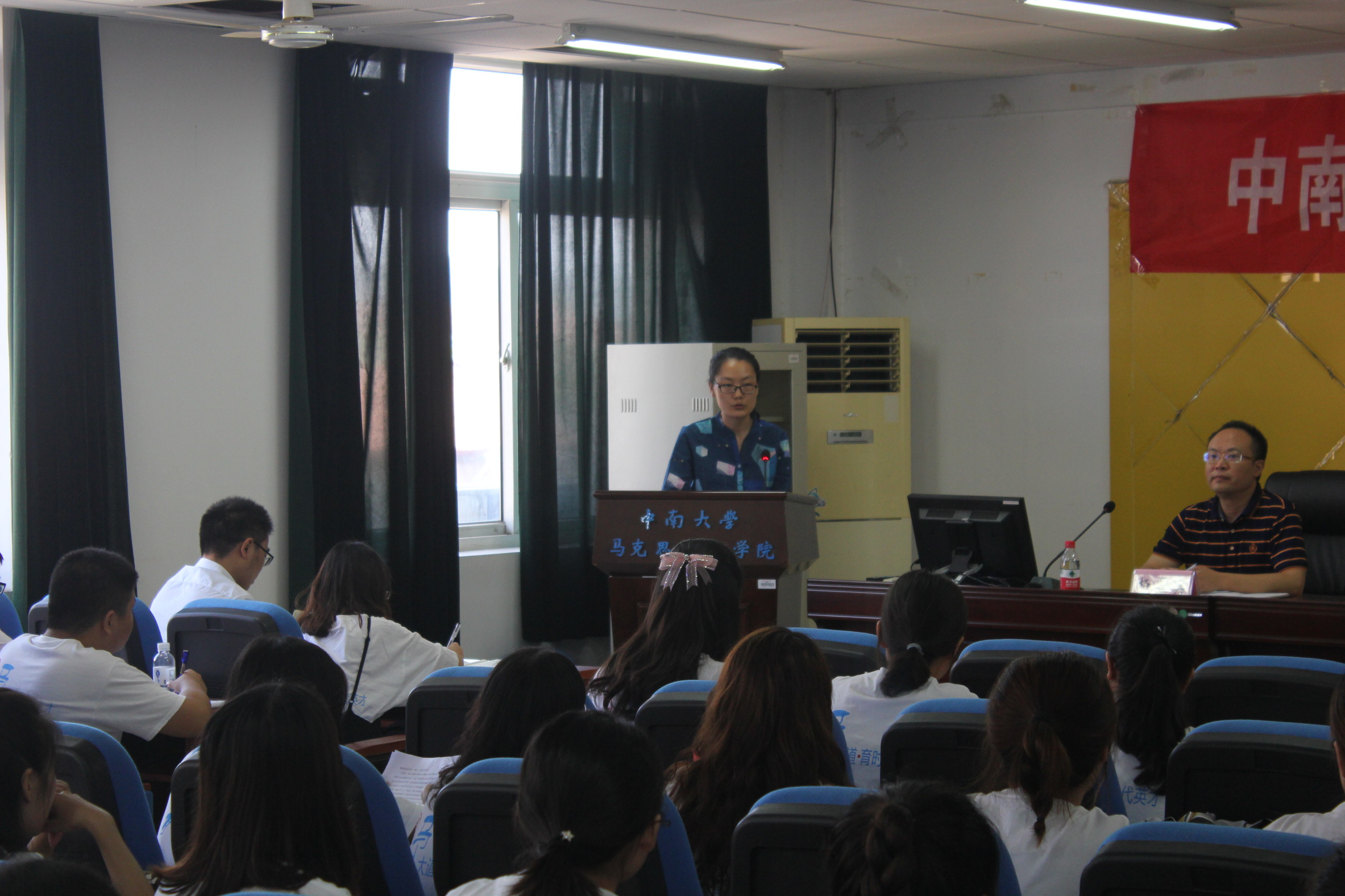 随后,由教师代表李兰兰老师发言。首先,李兰兰老师代表马院全体教师对于大家的到来表示热烈的欢迎,其次李老师也指出,仰望星空让我们志存高远,脚踏实地让我们明白肩上的重任。李老师勉励大家要做到四个方面。第一,积累扎实的专业。第二,提高语言表达能力、人际交往能力等多方面的能力。第三,多读书,多运动。第四,学会学习。