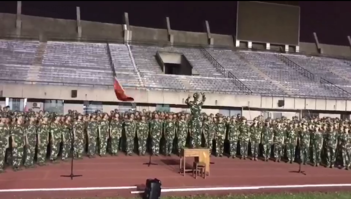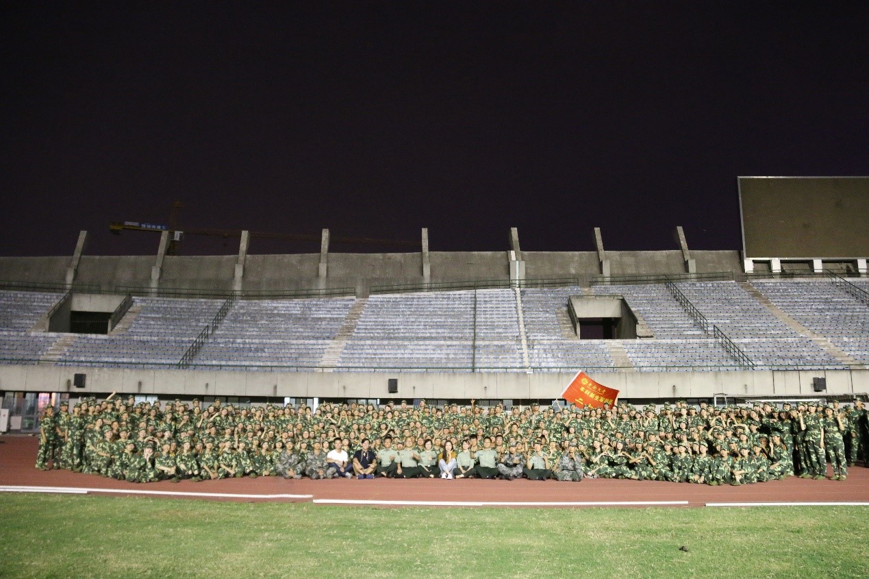 夜晚的帷幕才刚拉起,嘹亮的军歌就已响起。9月22日晚上七点,球王会官网新校区体育场人潮涌动,穿着整齐军装的大一新生们迈着整齐的步伐器宇轩昂地走进田径场,按照各连教官的指令列队,等待着大一新生军训期间的重头戏——合唱比赛的开始。