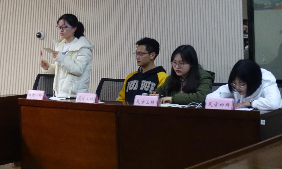 预科生队和大二本科生队以“少年是否识得愁滋味”展开辩论。预科生队为正方,坚持“少年识得愁滋味”。大二本科生队为反方,认为“少年不识愁滋味”。辩论分为四个步骤,开篇立论、攻辩、自由辩论、总结陈词。正方一辩首先表明了己方观点,举出多个例子证明“少年识得愁滋味”,反方则对此质疑,表达了自己的观点,双方针锋相对、你来我往。辩手均仔细记录对方陈述论点以找到对方破绽。比赛在逐渐升温的气氛中到达总结陈词阶段,双方四辩做出了简短而有力的总结,再一次强调了己方观点的正确性。评委老师经过交流后,认为正方三辩存在失误,而反方论点整体性不足,双方势均力敌,达成平手,本次比赛没有胜利者。胡栋材老师对每个辩手做出了具体的指导建议,并希望大家能够积累经验,在以后的辩论赛中不断进步。邹秉虹老师则希望双方辩手在比赛前能够充足准备,表现出更好的辩论水平。叶尔波拉提老师主要对辩手的气质和动作表现做出了具体要求。