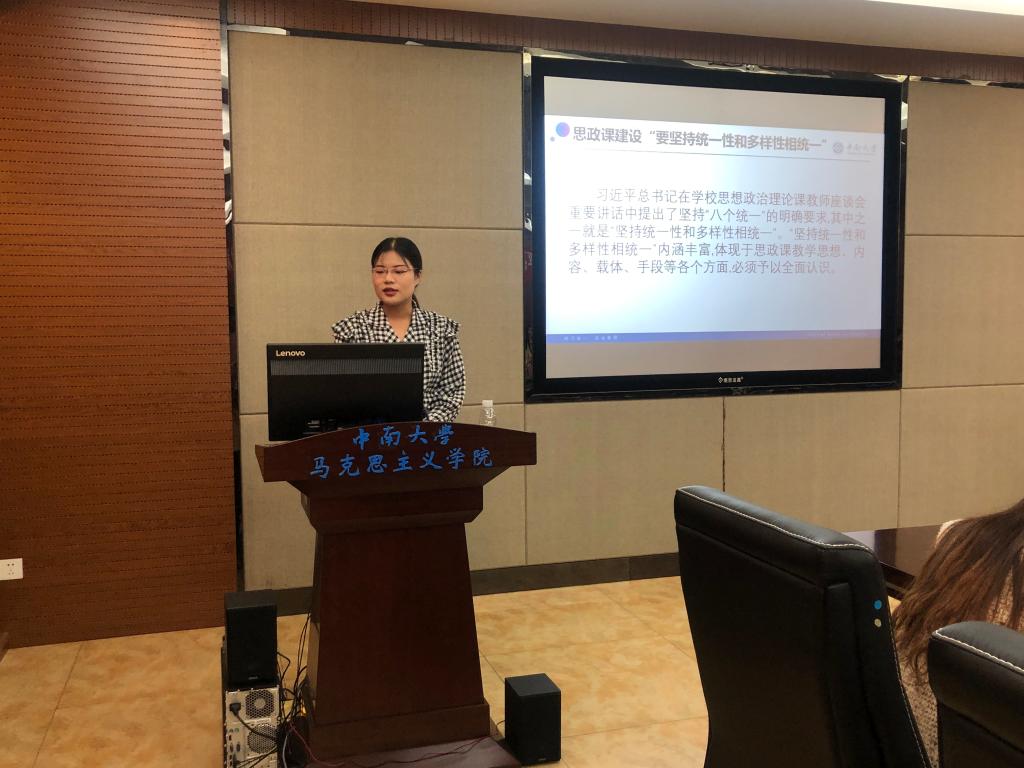 本次论坛主要围绕习近平总书记在思想政治理论课上的重要讲话中的“八个相统一”展开。李京结同学围绕“主导性与主体性相统一”,认为要发挥教师主导性,注重启发与引导;重视员工主体性,提高其主动性与创造性,并阐述了单主体说,双主体说,多主体说,主体间性(主体际性)说。王娇林同学围绕“政治性与学理性相统一”从四方面介绍了思政理论课的政治性要求和学理性要求,坚决反对割裂政治性与学理性。羊丽雅同学从“知识性与价值性相统一”展开,以思想政治理论课的知识性与价值性“是什么?”、“发展开展现状”和“如何正确认识和把握”进行了深入的分析。冯小倍同学从“建设性和批判性相统一”展开,认为注重建设性的同时,绝不能忽视其批判性和斗争性。徐茂盛同学围绕“理论性与实践性相统一”,结合自身实践经历,认为老员工要积极学习理论,勇于投身实践。刘亚萍同学围绕“统一性和多样性相统一”,夹叙夹议,从“坚持马克思主义指导”、“创新思政教材”、“拓展课程教学主渠道”和“坚持灌输理论”四个方面阐述了“统一性和多样性相统一”的内容。黄洁萍同学以“灌输性与启发性相统一”为切入点,从“启发教育的合理性和有效性”、“以灌输为启发提供方向和理论上的指导”和“以启发增强灌输内容的效果”三个方面进行了论述。郑丽丽同学以“显性教育与隐性教育相统一”为切入点,深入浅出的探讨了“课程思政”与“思政课程”之间“同向”、“同行”的关系,提出要建立“以一导多”的运行机制,紧扣“四个正确认识”。