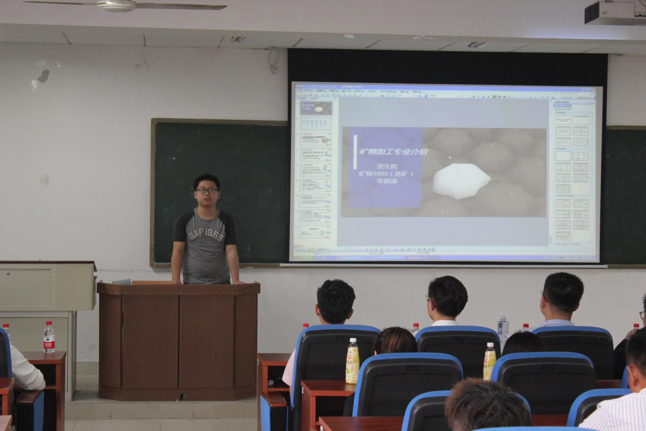 宣讲会中,各专业的优秀毕业生都拿出了精心准备的PPT来全面展示各专业的特色。来自矿物加工的张银涛和陆彪结合自身理解诙谐幽默的讲解了矿物加工专业的含义及所学课程,并亲切的为同学们提供了未来学习的方向。来自无机非金属的刘洋从国家战略、公司专业特色和毕业后的方向为同学们整体分析概括了无机非金属专业的优势。铁道工程专业的孟晓白和胥文涛以在座同学的角度分析了铁道工程专业的长处、从专业优势、学科排名、团队力量、实验器材及毕业生去向着手吸引了同学们的注意力,展示了铁道校区的风貌,让同学们充分了解了该专业的特点。采矿工程的汪富和李传奇,解释了采矿工程专业的重要性及其解决的问题,为同学们详细的解释了专业优势和就业环境。资源勘查专业的冯玉龙和方舒彬以其生动详实的经历给同学们展现了资源勘查专业的特色,并给同学们提出了有利于未来学习生活以及未来人生规划的深刻建议。环境工程专业的程勋强为同学们总体概括了环境工程专业的特色及优点并分析介绍了有利于同学们毕业后的几个方向。王海鹰教授介绍了环境工程专业的特色、细分了环境工程专业所涉及的专业及课程、为同学们拓宽了视野,给同学们展现了环境工程专业的别样魅力,赢来了全体同学的关注。