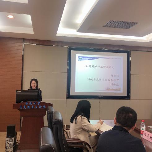 何秋娟学姐则主要从读书、选题、标题拟定、行文构架、语言风格等方面分享了自己的见解。她强调论文写作要有自己的风格,敢于下手、舍得下手、不厌其烦,研究方向要集中,并告诉大家该如何尝试选定适合自己投稿的期刊。