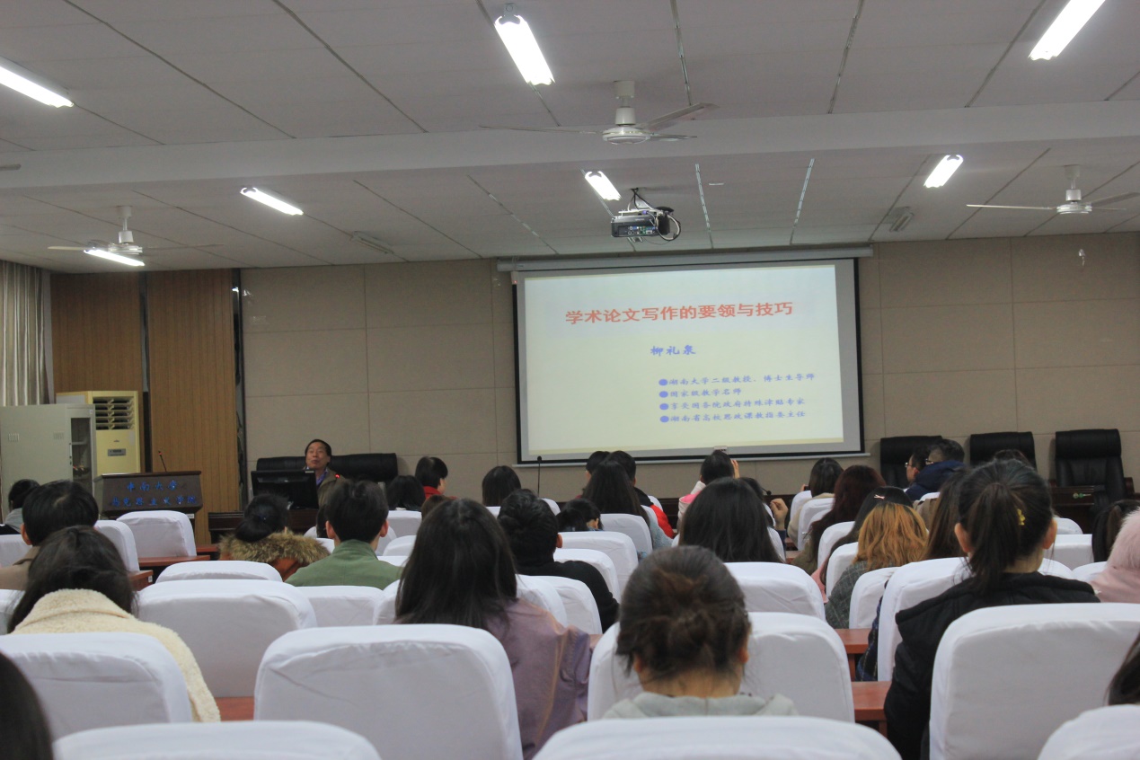 讲座伊始,副经理周湘莲教授对柳礼泉教授的到来表示热烈欢迎,并详细介绍了柳教授的学术简历,同时希望同学们能好好享用本次的学术大餐。讲座内容主要分为五个部分,分别是学术论文的基本内涵与主要特点、学术论文的写作步骤与基本要求、学术论文的写作规范与技巧运用、学位论文写作的特殊要求与技巧以及如何增加学术论文投稿的命中率。