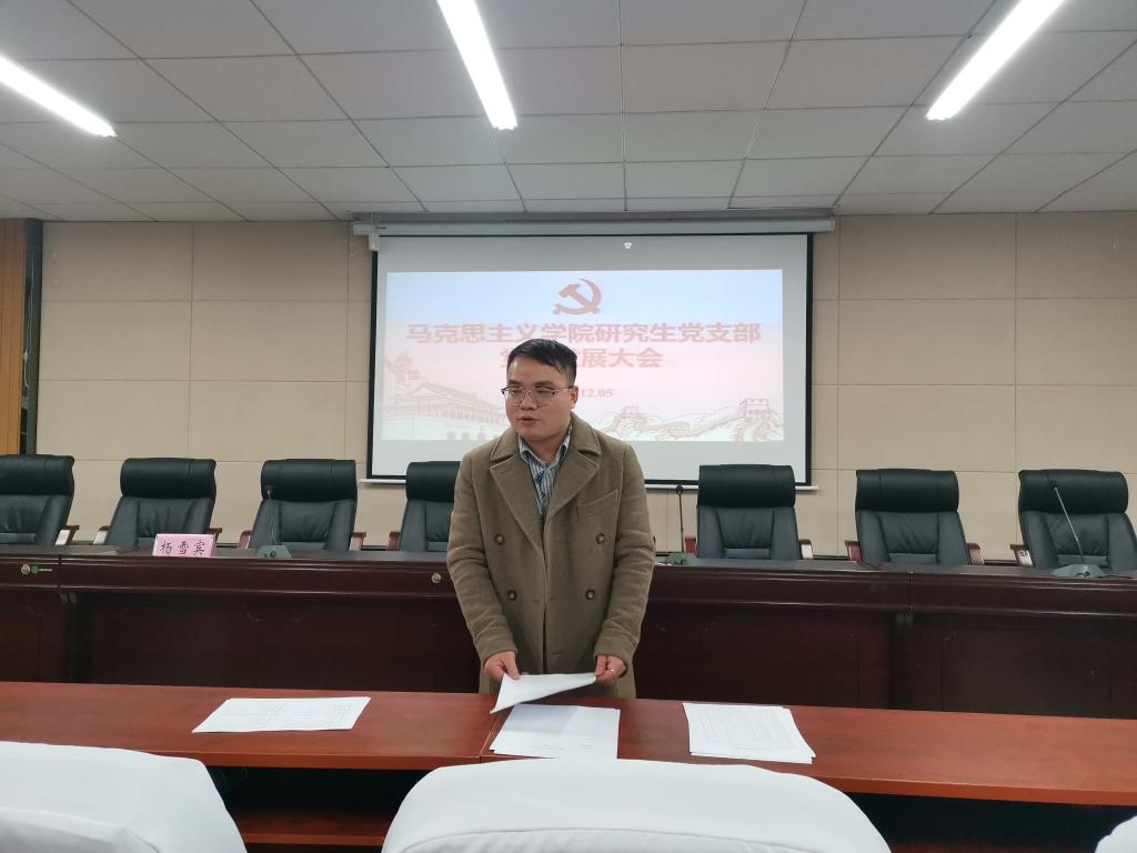 为更好地吸收新党员、为党注入新鲜血液,推进党的基层组织建设。12月5日晚七点,马院研究生党支部于会议室407召开党员发展大会。公司党委副书记杨雪宾及研究生党员、预备党员参加此次会议。会议由支部副书记张维超主持。