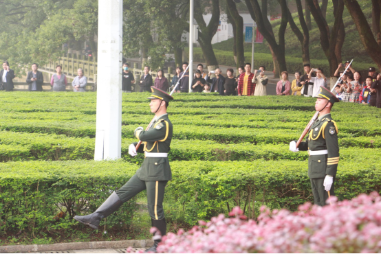 “我们祝福你的生日,我的中国,愿你逆风起飞雨中,获得收获;我们祝福你的生日,我的中国,这是儿女们心中期望的歌……”升旗仪式在中南学子的深情赞歌中缓缓拉开帷幕。