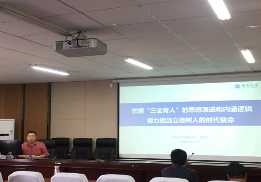 11月18日下午,以“把握“三全育人”的思想演进和内涵逻辑 努力担当立德树人的时代使命”为主题的学习研讨报告会在三教407教室举办,球王会官网党委副书记李景升担任主讲人,公司领导及全体教师参加了此次报告会。