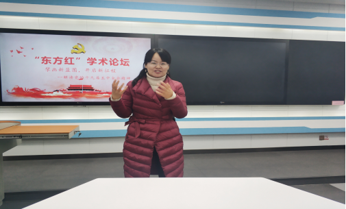 刘依芷以“繁荣文化事业和文化产业,提高国家文化软实力——十九届五中全会中文化建设领域的交流汇报”为题,从提高文化软实力方面理解十九届五中全会的目标,鼓励马院学子们自觉承担起新形势下宣传思想工作的使命任务,做到真正的在马言马。