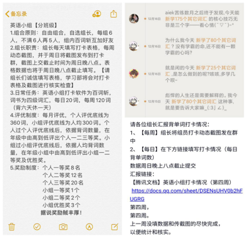 “百词斩”app为每一个单词提供了趣味的配图和例句,让记单词成为了一种乐趣。年级会学习部借助“百词斩”平台开展英语单词打卡学习活动,并设立奖励制度,调动同学们记单词的积极性。英语小组成员互相添加成为好友,关注彼此的学习动态,互相鼓励监督,让背单词,不再是一个人。