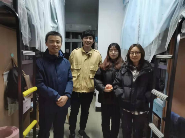 光阴似箭,日月如梭,2020年即将结束。在准备考试期间,为深入了解同学们的期末复习状态和身心状况,思政1901班班导师刘勇为老师和辅导员陈力瑞老师在2020年12月25日晚上七点半来到员工寝室看望同学们的学习状态。