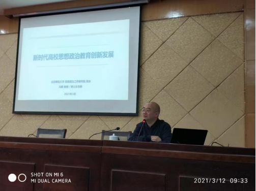 3月12日,北京师范大学思想政治工作研究院经理、博士生导师、原教育部思政司司长冯刚教授应邀莅临公司,在校本部升华楼报告厅为公司作了题为“新时代高校思想政治教育创新发展”的专题讲座。公司领导、教师代表、博士生硕士生参加了讲座,讲座由经理王翔教授主持。