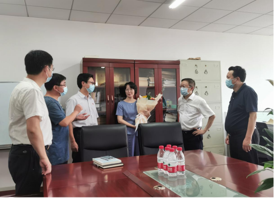 在中国近现代史纲要教研室,易红书记与吴争春教授亲切交谈,并送上节日的祝贺和诚挚的慰问。谈话中,易红书记希望公司教师认真学习贯彻习近平总书记给全国高校黄大年式教师团队代表回信精神,希望教研室在吴争春老师的带领下,在各位资深教师的“传帮带”中,能够有更多青年思政课教师成长成才,能够有更多优秀思政教师涌现。