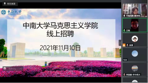 本网消息 为进一步充实和优化教师队伍,11月10日晚,球王会应当前疫情防控要求,通过腾讯会议的线上方式,对来自华中地区武汉大学、华中科技大学、华中师范大学、郑州大学四所高校的应届博士毕业生,进行了专场招聘宣讲。公司党委书记王希俊、经理王翔、副经理曹清燕以及青年教师吴倩,组织并参加了会议。