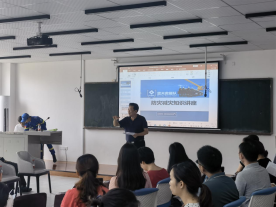 本次培训公司邀请长沙蓝天救援队为大家讲授防城市内涝、防溺水、气道异物梗阻、心肺复苏的自救互救知识与实操。长沙蓝天救援队是一支专业的应急救援队伍,诸多热心公益的志愿者经过专业的救援培训后,为省内外的应急救援、社会培训、活动保障等提供服务。