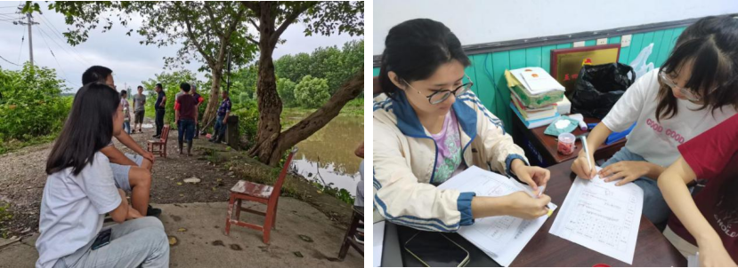 在日常的工作和学习中,同学们善于将河坝镇的人和物放在首位,走进田间地头,深入研讨河坝镇居民的生活难题,通过一问一答的方式突破天南海北语言交流的重重阻碍,用亲切温暖待人接物的方式促使当地居民敞开心扉、讲实话、说实事。