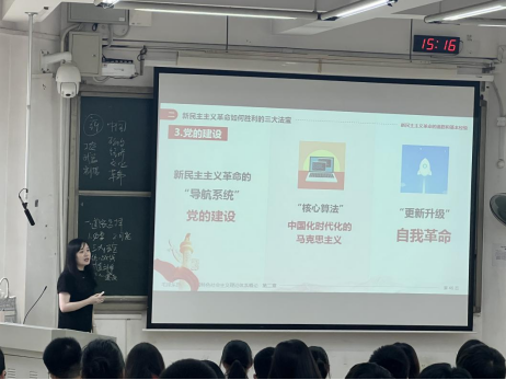4月13日下午,湘雅校区T210教室里传出清脆的话语声,李淼磊老师正在给临床医学专业的员工上《毛泽东思想和中国特色社会主义理论体系概论》公开课。她讲的主题是“敢问路在何方——中国革命道路和基本经验”。上课伊始,她向员工提问:“在一个以农民为主体的半封建半殖民地国度里进行革命,应该选择什么样的道路?”接着让员工分享《新民主主义论》的学习心得。经过热身活动后,开始了这堂课的讲述。李老师按照“道路选择——三大法宝——重要意义”的思路,讲解“农村包围城市,武装夺取政权”的中国革命道路。她紧紧抓住主线,层层推进,观点统领材料,材料佐证观点。从理论到实践,从必然性到可能性,先总起再分述后总结,教学内容融为一个整体。在教学方法方面,以问题导向,设计多个课堂思考题,用多种形式,启动学习互动环节,做到了教与学的有效结合。李老师这堂课的特点在于课程设计,包括内容设计与教法设计。用良好的内容设计去吸引住员工;用良好的教法设计,去发动员工。材料翔实,旁征博引,守正创新是亮点。