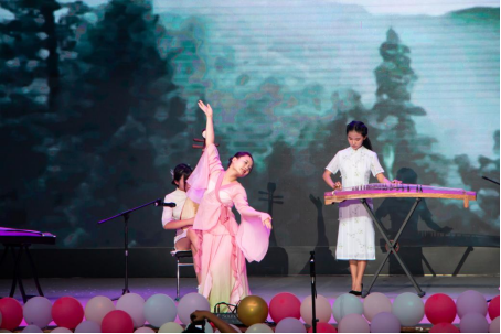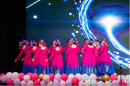 晚会第二篇章“恰·同学少年”中音乐舞蹈《兰亭序》将流行音乐与中国传统古典乐器相结合,婉转的乐声配合优美的传统舞蹈,将多种中华传统文化元素融会贯通,体现了马院兼容并包的思想理念;此外,来自柯尔克孜族的预科生同学带来舞蹈表演《欢乐的库姆孜》,欢快活泼的舞蹈使得现场观众一同欢呼舞动,展现马院各民族同学之间团结友好的氛围。