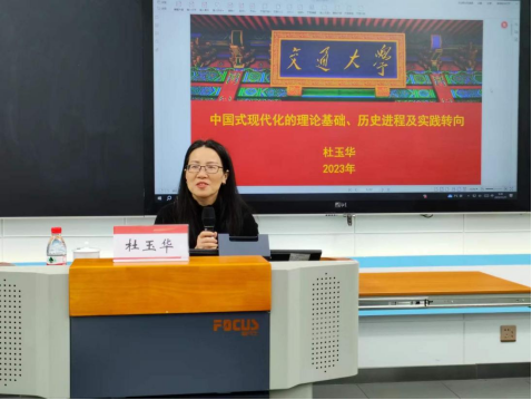 11月17日上午,应公司邀请,国务院学位委员会学科评议组成员、教育部高校思想政治理论课教学指导委员会委员,中央马克思主义理论研究和建设工程专家、国家社科基金重大项目和教育部哲社重大攻关项目首席专家,上海交通大学球王会杜玉华教授,在408会议室为公司师生作题为《中国式现代化的理论基础、历史进程及实践转向》的学术报告,报告会由公司经理曹清燕教授主持。