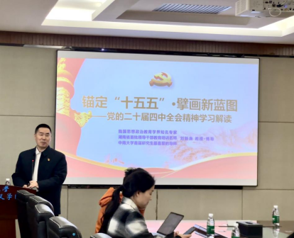 刘新庚教授以《锚定“十五五” 擘画新蓝图——党的二十届四中全会精神学习解读》为题讲授专题党课。他指出,本次全会系统总结了“十四五”时期的非凡成就,并全面擘画了“十五五”时期中国式现代化建设的宏伟蓝图。他强调,基层党组织应以“学深悟透”筑牢思想根基,“对标对表”推动部署落地,“问题导向”破解基层难题,“党建引领”凝聚工作合力,切实让全会精神在基层赋能增效、落地生根。