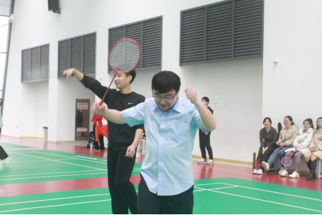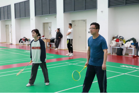 2023年3月25日下午14点30分,球王会在新校区羽毛球馆举行“与师同行,聚首羽林”羽毛球赛。经理王翔、党委副书记杨雪宾亲临比赛现场,共30余名马院师生参加了本次比赛。